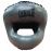 Casco de barra frontal hecho en piel con cierres de velcro en la barbilla, nuca y cuerdas en el cráneo.
